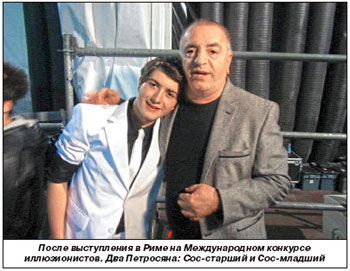 В конце мая в Риме на Международном конкурсе иллюзионистов 15-летний Сос завоевал титул чемпиона мира. Сегодня сын и внук основателя этой замечательной династии живут и работают в Германии. Так что рассказать о семье согласился Сос Петросян-старший.