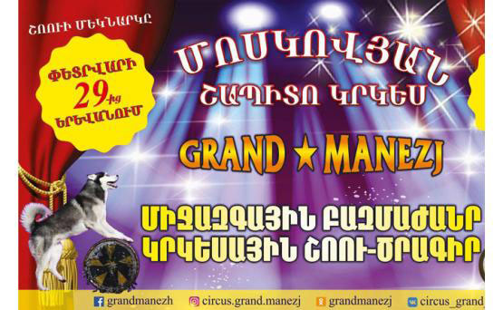 В Ереван прибыл Московский цирк-шапито "Гранд Манеж", гастрольное турне которого рассчитано на 3 месяца. Первые выступления состоятся 29 февраля, после чего они будут проходить в столице по пятницам, субботам и воскресеньям...