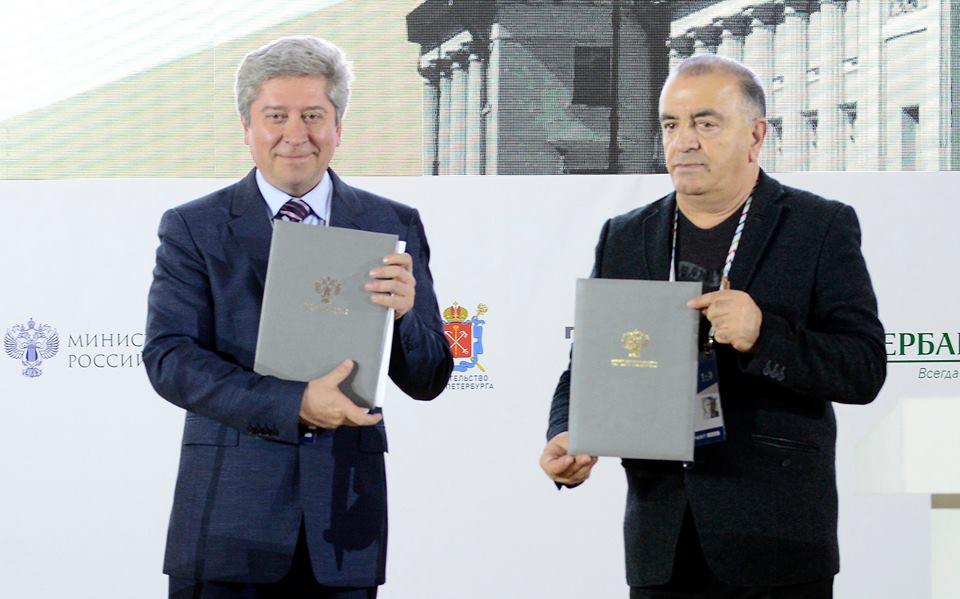 General director of Russian State Circus Dmitri Ivanov and General Director of Yerevan Circus Sos Iosif Petrosyan during the signing of cooperation agreements at the V St. Petersburg International Cultural Forum.